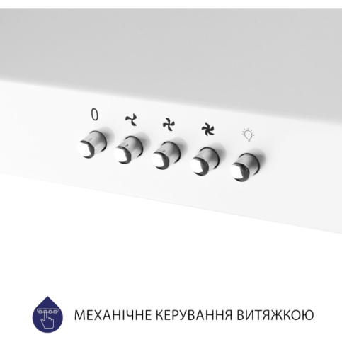 Витяжка має три швидкості роботи різної продуктивності. Рівень шуму пристрою становить 56-63 дБ, що вважається комфортним значенням.