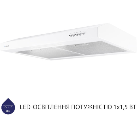 Витяжка для кухні обладнана LED-лампою потужністю 1.5 Вт. Саме світлодіодні лампи є найкращим вибором для додаткового освітлення кухонної поверхні, оскільки вони дають змогу істотно знизити витрати на електроенергію, а також мають високу світловіддачу.