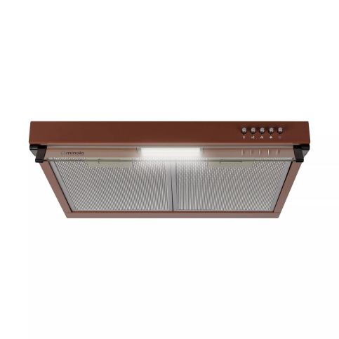 Minola HPL 622 BR — плоска витяжка в коричневому кольорі для стильної кухні Minola HPL 622 BR — це плоска коричнева витяжка зі скляним козирком, що додає тепла у ваш інтер’єр. Вона забезпечує продуктивність 450м3/год, добре освітлює робочу поверхню та створює комфортну атмосферу під час кулінарних експериментів. LED підсвітка випромінює м’яке світло й економить енергію. Надійна механічна панель керування проста у використанні навіть для новачків.