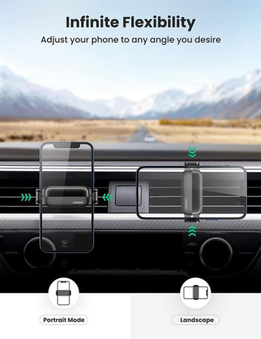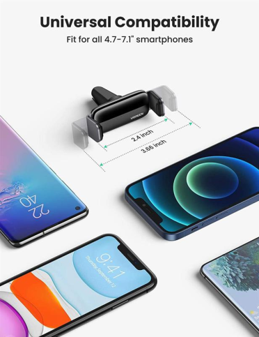 Автомобільний тримач для смартфона Ugreen LP120 (10422) – це необхідний для водіїв аксесуар, який кріпиться на вентиляційну решітку автомобіля та дозволяє за кермом автомобіля вільно спілкуватись, користуватись навігацією чи слухати музику з мобільного телефона. Просто покладіть свій смартфон у тримач, і він буде надійно утримуватись боковими фіксаторами. Завдяки розсувному механізму тримач Ugreen LP120 підходить для мобільних пристроїв шириною від 6,5 до 9,0 см і товщиною не більше 1,1 см. Легко переключайтесь з вертикального в горизонтальне положення. Можливість повороту на 360 градусів дозволяє налаштувати оптимальний кут огляду. Ви можете не хвилюватись, що подряпаєте вентиляційні решітки – виробник завбачливо обладнав кріплення тримача гумовими насадками.