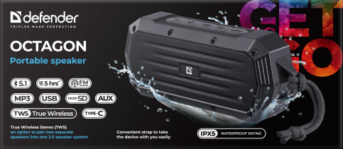 Колонка Defender Octagon стане незамінним супутником під час прослуховування улюбленої музики в різноманітних умовах, чи в авто, чи вдома, чи навіть на природі.