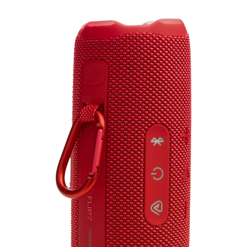 JBL Flip 7 вражає не лише звуком, а й стильним дизайном у яскравому кольорі. У комплекті передбачені змінні аксесуари: карабін і петля для пальця, які додають зручності під час транспортування.