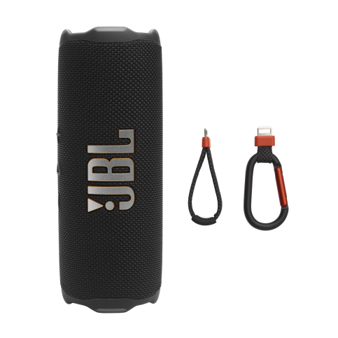 JBL Flip 7 вражає не лише звуком, а й стильним дизайном у яскравому кольорі. У комплекті передбачені змінні аксесуари: карабін і петля для пальця, які додають зручності під час транспортування.