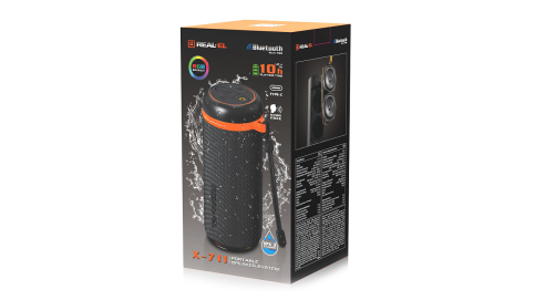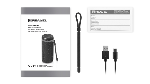 REAL-EL X-711 – максимум звуку, мінімум обмежень. REAL-EL X-711 – це компактна акустична система з потужністю 10 Вт та двома динаміками, що вражає деталізованим об’ємним звучанням. Підключайся через Bluetooth або просто вставляй USB-флешку та насолоджуйся музикою без зайвих налаштувань. TWS-режим дозволяє об’єднати дві колонки в потужнішу стереосистему – ще більше гучності, ширини сцени та емоцій. Знизу корпусу розташований пасивний випромінювач з підсвічуванням, що додає глибини басам і створює виразний візуальний ефект. Вбудований мікрофон дозволяє відповідати на дзвінки прямо з колонки, а колесо гучності забезпечує точне та швидке керування рівнем звуку. Ручка для перенесення, IPX3-захист та до 10 години автономної роботи – все, що потрібно для мобільного звучання на кожен день. Особливості IPX3 захист TWS – стерео підключення двох систем до одного джерела аудіо сигналу RGB підсвічування Вбудований мікрофон Bluetooth USB вхід
