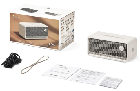 Edifier ES60 оснащена 34 Вт RMS (18 Вт середньо-басовий динамік + 2x8 Вт твітери), що забезпечує насичений звук із глибокими басами завдяки овальному середньо-басовому драйверу (53x93 мм), двом 22-мм шовковим твітерам із неодимовими магнітами та пасивному басовому випромінювачу (47x109 мм). Високоефективний підсилювач класу створює іммерсивне 360° звучання. Колонка підтримує чотири звукові режими (Music, Movies, Gaming, Outdoor), які можна налаштувати через додаток Edifier ConneX для адаптації звуку до різних сценаріїв. Частотний діапазон 58 Гц – 20 кГц і співвідношення сигнал/шум ≥85 дБ(A) гарантують чітке відтворення музики, діалогів чи ігрових ефектів.