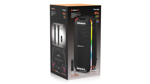 REAL-EL X-775 — потужний стиль, гучний характер! REAL-EL X-775 — це потужна портативна акустична система на 80 Вт. Вона оснащена динаміками, які забезпечують глибокий бас, яскраву середину та чіткі високі частоти для неймовірного захоплюючого звучання. Ідеальна як для домашніх тусовок, так і для вечірок на природі — бери її з собою куди завгодно. Підключай смартфон через Bluetooth, вставляй флешку, використовуй AUX — ти завжди маєш вибір, як слухати улюблену музику. А якщо хочеш ще більше звуку — активуй режим TWS, об’єднай дві колонки в одну бездротову 160 Вт стереосистему. RGB-підсвічування навколо динаміків та по боках робить атмосферу ще яскравішою — справжнє шоу в кожному треку. Мікрофонний вхід з регулюванням гучності та ефектом ехо перетворюють X-775 на чудове рішення для караоке, ведення заходів або голосових анонсів. Колонка працює до дев’яти годин автономно завдяки акумулятору 33.3 Вт*г (4500мА*г), заряджається через USB Type-C, а керування здійснюється як вручну, так і за допомогою пульта дистанційного керування. REAL-EL X-775 — звук, що заряджає кожну мить.