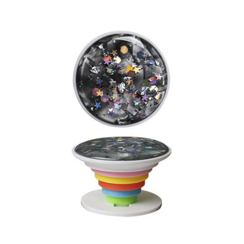 LUXE CUBE стильний аксессуар з об"ємним 3D зображенням та кольоровою основою-веселкою. Забезпечує надійне зчеплення, щоб ви могли надсилати текстові повідомлення однією рукою, знімати кращі фотографії та переглядати відео. Функціонує як зручна підставка, завдяки якій ви можете переглядати відео. Використовуйте, як штатив для найкращих селфі або відео-конференції. Надійна липучка 3М приклеюється до більшості пристроїв та чохлів. Розміри: діаметр 39,74 мм х 7 мм і 24,25 мм в розкладеному вигляді.