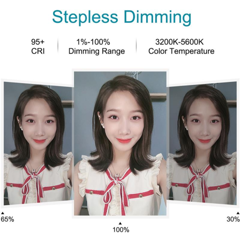 Кількість світлодіодів: 72 шт. Тип світлодіодів: 2835 Яскравість лампи: 24-26 lm Колірна температура білого світла: 6500K Температура теплого білого кольору: 3200K Потужність: 7-14W Напруга: 5V Індекс передачі кольору: Ra> 82 Діапазон затемнення: 1% -100% Матеріал: пластик ABS, акрил Розміри: зовнішній діаметр 160 мм, внутрішній діаметр 110 мм Харчування: USB Розмір світлодіодного кільця: 16х16 см (16х21 см з кріпленням) Комплектація: Кільцевій світло 6.2 " Подвійне кріплення для телефону Штатив Кульова головка