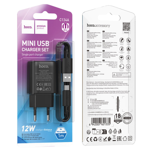 HOCO C134A Solid single-port charger set (Micro) (EU) Black