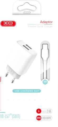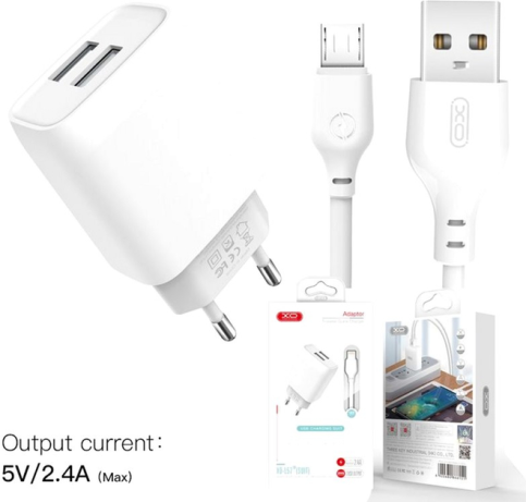 XO 2xUSB 2.4A + cable USB to Micro 5P white (L57-M-WH)