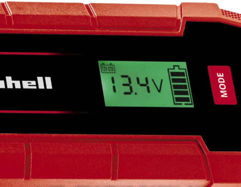 Зимовий режим зарядки був розроблений спеціально для температур зовнішнього середовища нижче 5° C. Автоматизовані система захисту від перезарядження, короткого замикання і від зворотної полярності запобігає пошкодженню зарядного пристрою і акумулятора. Зарядний пристрій Einhell має ступінь захисту IP65 і захищений від пилу і бризок води. LCD індикатор показує напругу акумулятора та стан зарядки. Стан заряду акумулятора і зарядного пристрою: 25%, 50%, 75% і 100% заряду, акумулятор 12 В та індикація зарядки у зимовому режимі. Сигнальна лампа загоряється відразу ж, якщо виявляються будь-які проблеми. Зажими для підключення до клем акумулятора повністю ізольовані. На корпусі зарядного пристрою є отвір для кріплення до стіни. Зарядний пристрій Einhell CE-BC 5 M LiFePO4 підходить для заряджання 12 В акумуляторів ємністю до 120 Ампер і максимальним струмом заряджання 5 Ампер. — Інтелектуальний зарядний пристрій з мікропроцесорним контролером.