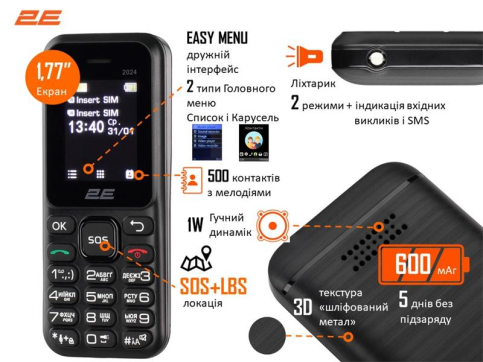 2E S180 2024 1.77" 2SIM, 600мА•год, чорний 694743653885