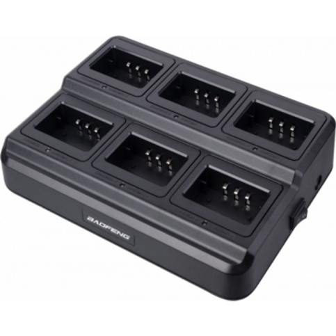 Використання 6-місного зарядного пристрою дає змогу заряджати одночасно до 6 радіостанцій/акумуляторних батарей, ніж дасть заощадити простір для процесу заряджання (завдяки компактності конструкції), зменшити необхідну кількість розеток для під'єднання електроживлення до 1, спростить контроль за збережністю і працездатністю радіостанцій/акумуляторних батарей.