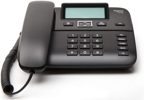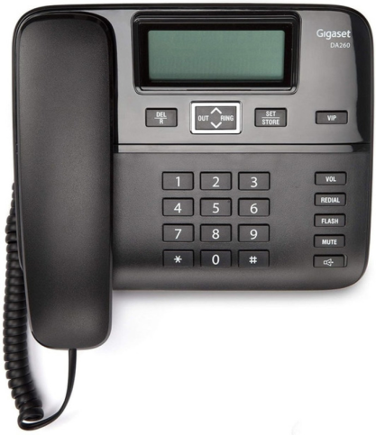 Дротовий телефон Gigaset DA260 System LAM. 12 цифрових клавіш плюс 6 функціональних клавіш Функції та можливості: Швидкий набір Відповідь Повторний набір Скидання Режими роботи: Гучний зв’язок Телефонна трубка
