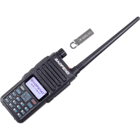 Рація Baofeng DR-1801UV є чи не найкращим варіантом бюджетної цифрової рації з доступних на ринку. Рація працює у 2 діапазонах частот 136-174 МГц (VHF), 400-470 МГц (UHF). Має вбудований 5 Вт передавач, що забезпечує стабільний зв'язок на відстані до 8 км. Зазначена дальність забезпечується за умови прямої видимості приймача та передавача (без перешкод) і зі штатними антенами. Збільшити дальність передавання можна завдяки заміни антени, на потужніший (є в асортименті нашого магазину).
