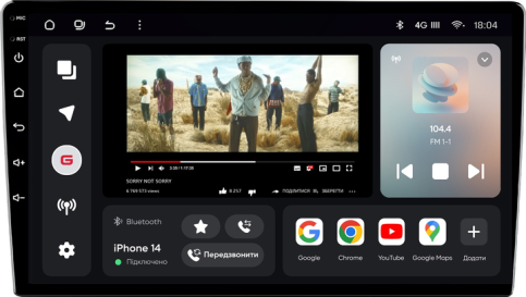 Мультимедійна система підтримує дві SIM карти для 4G LTE доступу до Інтернету. Як тільки ви завели авто — магнітола одразу підʼєднується і ви можете побудувати маршрут в Google Maps чи Wase. Одразу в ефірі інтернет-радіо або ваш улюблений музичний застосунок. Хочете дивитись відео — обирайте серед YouTube, Netflix, Amazon Prime, Disney або будь-який інший онлайн кінотеатр. Вам доступні більш ніж 10000 застосунків на Google PlayMarket: навігація, музика, фільми та серіали. З Інтернетом — це справжній розважальний центр.