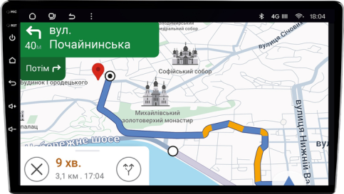 Ваша улюблена навігація Google Maps або Wase нарешті на екрані вашого автомобіля. Завжди онлайн, а отже з інформацією про затори, камери і з можливістю шукати потрібні місця. Забудьте про використання смартфона для навігації. Тепер побудувати маршрут і рухатись по ньому зручно безпосередньо на екрані вашого автомобіля. Голосові підказки навігації приглушують музику або радіо. Екран не перемикається при телефонній розмові гучним зв'язком. Ви більше ніколи не заблукаєте і не пропустите поворот.