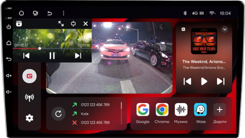 Мультимедійна система підтримує дві SIM карти для 4G LTE доступу до Інтернету. Як тільки ви завели авто — магнітола одразу підʼєднується і ви можете побудувати маршрут в Google Maps чи Wase. Одразу в ефірі інтернет-радіо або ваш улюблений музичний застосунок. Хочете дивитись відео — обирайте серед YouTube, Netflix, Amazon Prime, Disney або будь-який інший онлайн кінотеатр. Вам доступні більш ніж 10000 застосунків на Google PlayMarket: навігація, музика, фільми та серіали. З Інтернетом — це справжній розважальний центр.