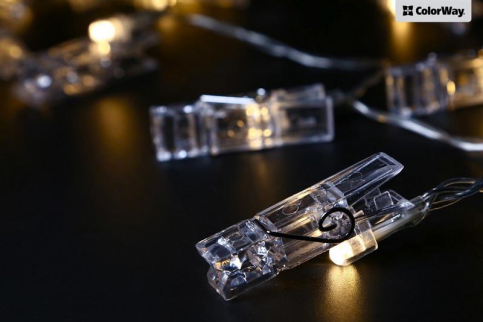 Світлодіодна гірлянда з прищіпками для фотографій Створіть незабутні спогади LED photo clip - це 4.2м для Вашої творчості. Форма кліпів повністю дублює невеликі прищіпки, які з’єднані прозорим тонким дротом. Дизайн світлодіодних зажимів дарує легкість і мінімалізм з приємним теплим сяйвом. Дана стрічка вогнів - це унікальний спосіб презентувати фотографії, малюнки, записки або елементи декору у Вашому домі. Досить просто закріпити їх на прищіпки, щоб висвітлити яскраві спогади і створити затишну атмосферу. Також світлодіодна гірлянда стане відмінним доповненням до інтер’єру будинку: вітальні, спальні, ганку або Вашого саду. Особливо доречно вона буде виглядати на зимовій красуні - ялинці, адже допоможе створити унікальний новорічне вбрання. Ідеально підходить для декору літніх терас, кафе, вітрин магазинів, виїзних заходів. Світлодіодні затискачі додадуть атмосферности Вашим святам і особливим випадкам завдяки приємної м’якості теплого сяйва.