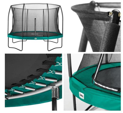 Залишивши осторонь матеріали преміум-класу, поговоримо про зовнішній вигляд батута! Унікальний та витончений дизайн батута First Class робить його справжнім центром уваги у вашому саду! Глянцева захисна накладка товщиною 0,76 мм не лише надає батуту First Class преміум-класу розкішний вигляд, але і є надміцною та надзвичайно широкою, повністю закриваючи конічні пружини. З довжиною пружини 210 мм ви зможете здійснювати високі та потужні стрибки. Якщо ви втратите рівновагу під час стрибка, щільна, дрібнопориста сітка безпеки з входом, що самозакривається, подбає про те, щоб ви приземлилися безпечно і м'яко!