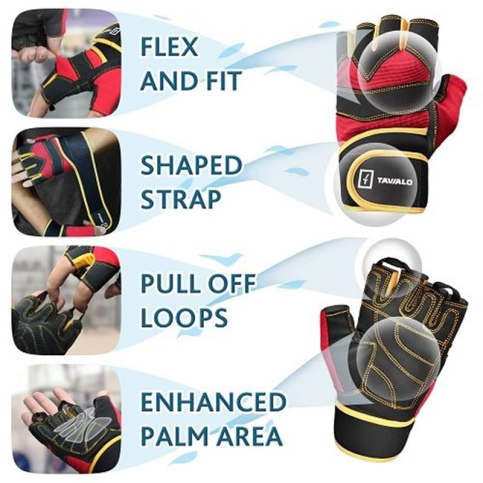 Tavialo Black-Red-Yellow L - чоловічі рукавички для заняття спортом, роботи з важким інвентарем в залі, для їзди на велосипеді та ін. Розмір: L (19-22 см). Виготовлені рукавички Tavialo Black-Red-Yellow L: Поліестер - 70% Нейлон - 30% Посилена область долоні для зручного захоплення спортивного снаряда, запобігає мозолям та іншим пошкодженням на руках. На руці рукавичка надійно фіксується за допомогою ремінця на липучці, який підлаштовується під діаметр руки. Завдяки нейлону рукавички комфортно лягають по руці, еластичні і дозволяють легко згинати й розгинати руку. Рукавички Tavialo Black-Red-Yellow L легко знімаються з руки за допомогою 2-х петель.