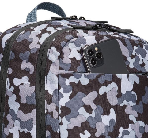 У передній кишені передбачено місце для невеликих електронних пристроїв та ручок, кишеню для ключів та потайну кишеню на блискавці;