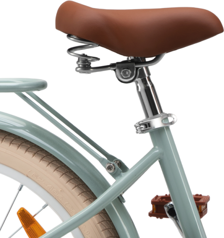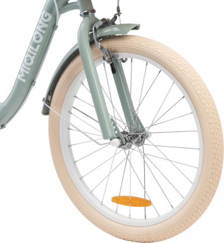 Колесо 20" стальне, традиційне зі спицями та класичною втулкою на підшипниках. Високий і широкий профіль покришок забезпечать комфортну їзду як по асфальту, так і по нерівностях. Колеса додатково захищені металевими бризковиками, забарвленими у колір велосипеда, що надійно захистить від бруду і бризк.