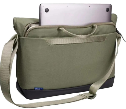 Однією з головних переваг сумки є футляр із м’якою підкладкою, який дозволяє безпечно зберігати ноутбук або планшет з діагоналлю екрана до 14" дюймів. Доступ до головного відділення можливий двома способами: через проріз на блискавці ззаду або через верхню частину, що згортається, яка додатково захищає речі від негоди.
