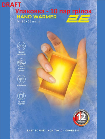 Хімічна грілка для рук 2E розмір М (95х55 мм), до 12 годин - 10 пар