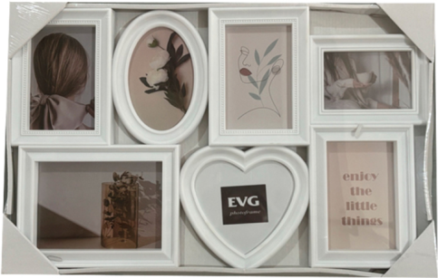 Мультiрамка на 7 фото: 5-10*15см, 1-13*18см, 1-18*13см, пластiк, колiр білий. Загальний розмір 36x22x57см
