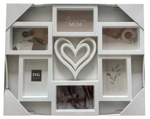 Мультiрамка на 6 фото: 6- 10*15см, пластiк, колiр білий. Загальний розмір 56X23X46см