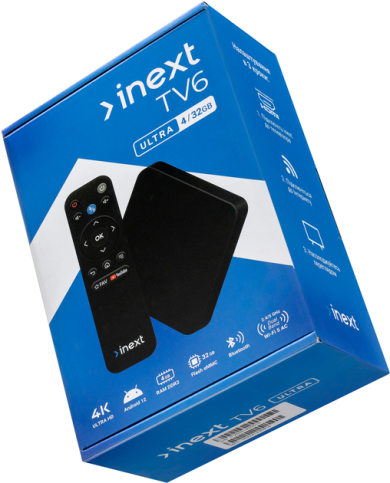 inext TV6 Ultra — це розширена версія inext TV6, яка отримала вдвічі більше оперативної пам’яті (4 ГБ) та накопичувача (32 ГБ). Це означає швидшу роботу, плавніше відео, ще більше можливостей для встановлення додатків та зберігання даних.