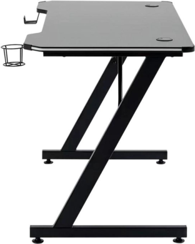 Поверхня стільниці гладка, що створює ідеальне місце для плавного руху мишки. Форма столу прямокутна з розмірами 120 см завдовжки та 60 см завширшки, що забезпечує достатньо місця для геймерської атрибутики та комп'ютерної техніки. Продуманий розподіл простору дозволяє зручно розмістити комп'ютер, клавіатуру, мишу та інші необхідні аксесуари.