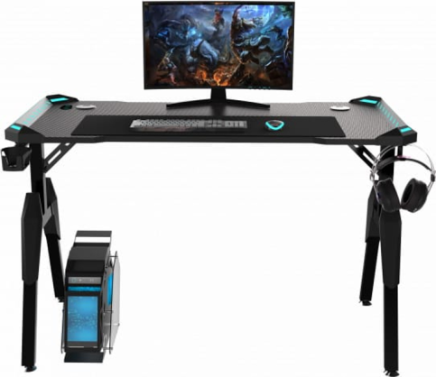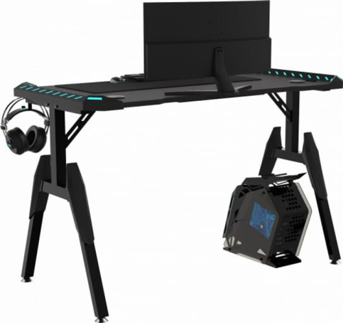 Для зручності користувачів передбачені ергономічні елементи. Тримач для навушників допомагає зберегти порядок на столі, а підставка під стакан дозволяє зручно розмістити напої, виключаючи ризик їхнього проливання. Спеціальний отвір для шнурів сприяє акуратній організації кабелів, що не тільки спрощує доступ до пристроїв, але робить робоче місце більш естетичним. Вбудоване LED-підсвічування збоку додає сучасний акцент і створює атмосферу, яка підходить для вечірніх ігор.
