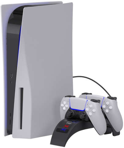 Завдяки спеціально виділеним позиціям для контролерів, процес зарядки стає максимально простим і комфортним: контролери легко встановлюються та надійно фіксуються для безпечної зарядки. Індикатори зарядки чітко показують поточний статус кожного контролера, надаючи вам змогу з першого погляду визначити, коли геймпади готові до використання. Вбудований підвищуючий регулятор постійного струму забезпечує стабільну та безперебійну зарядку з напругою 5 В і струмом до 850 мА на кожен контролер, що гарантує швидке й ефективне відновлення заряду. Корпус зарядного пристрою виконаний з міцного ABS пластику чорного кольору, що забезпечує його довговічність та стильний вигляд, гармонійно поєднуючись з дизайном PS5.