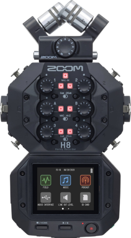 H8 продається разом із мікрофоном Zoom XYH-6. Цей капсуль являє собою два високоякісні односпрямовані мікрофони, чутливі до сигналу безпосередньо навпроти рекордера. Завдяки системі мікрофонних капсулів Zoom ви можете легко міняти капсулі й бути впевненими, що завжди використовуєте відповідний для певної роботи мікрофон.