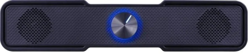 Модель оснащена підсвіченим регулятором гучності, зручно розташованим на передній панелі. Він також виконує функцію вимикача живлення, що додає зручності у щоденному користуванні. Живлення здійснюється через USB, тому не потрібно підключення до електромережі — достатньо USB-порту на комп’ютері. Аудіосигнал передається через стандартний аудіороз’єм, оскільки саундбар не має вбудованої звукової карти.