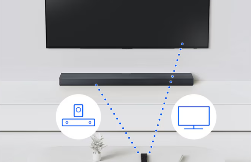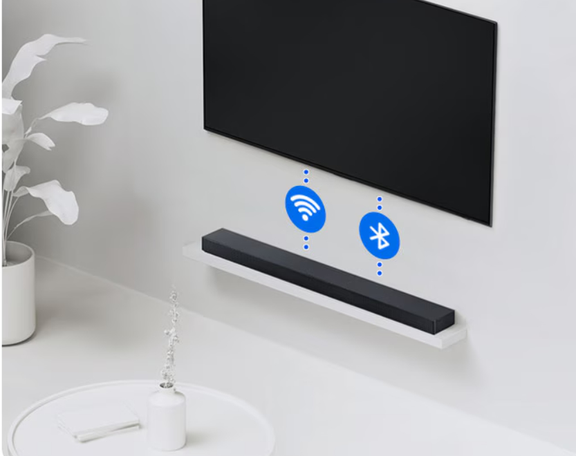 Під’єднайте саундбар до телевізора Samsung за допомогою Wi-Fi або Bluetooth лише за кілька кроків. Аудіо та відео ідеально синхронізуються для повного занурення у перегляд.