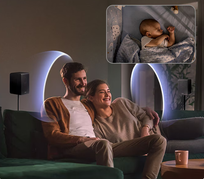Відчуйте справжній 3D-звук навколо себе. Завдяки бездротовій інтеграції Dolby Atmos у саундбарі ви почуєте кожен звук так, ніби перебуваєте в самому центрі подій.