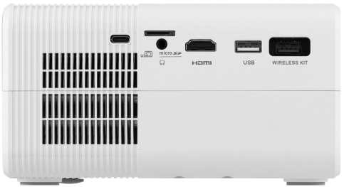 Проєктор оснащено різноманітними інтерфейсами, зокрема HDMI, USB Type-C, MicroSD, stereo mini jack, USB Type-A, і технологіями Bluetooth і Wi-Fi для зручності підключення до різних пристроїв. Вбудований динамік потужністю 5 Вт забезпечує чистий звук без необхідності підключення зовнішніх аудіосистем.