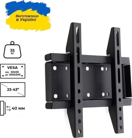 Кронштейн Sector TV20F — це надійне та компактне настінне кріплення, розроблене для встановлення LCD-телевізорів з діагоналлю від 23" до 43". Завдяки своїй фіксованій конструкції та продуманому дизайну, модель забезпечує щільне прилягання телевізора до стіни з мінімальним відступом — усього 40 мм, що дозволяє зекономити простір та створити акуратний вигляд.