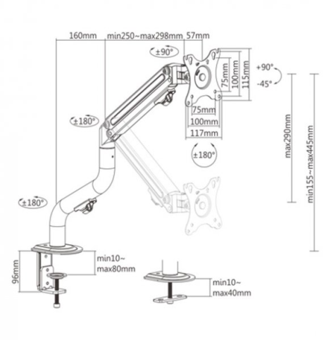 Кріплення для монітора Gembird MA-DA1-02 має міцну конструкцію, виготовлену зі сталі, алюмінію та пластику. Призначений для одного екрана діагоналлю 17-32″ і вагою від 2 до 8 кг, зручний і надійний кронштейн сумісний зі стандартами VESA 75 × 75, 100 × 100.