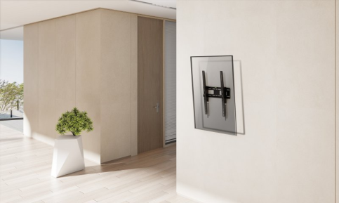 Завдяки регульованому куту нахилу до 15°, кронштейн дозволяє оптимально налаштувати положення екрана для комфортного перегляду, зменшуючи відблиски та покращуючи видимість під будь-яким кутом. Відстань до стіни становить лише 81 мм, що забезпечує охайний вигляд і компактне розташування телевізора в інтер’єрі.