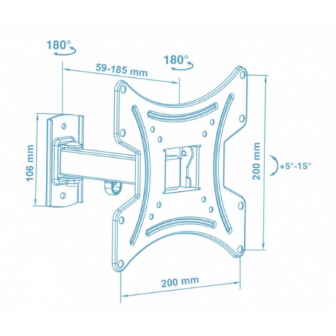 Walfix R-333B - це універсальне настінне кріплення для телевізорів. Дана модель кронштейна Walfix R-333B має 3 ступеня свободи, що дозволяє легко здійснювати регулювання нахилу, виносу від стіни і повороту телевізора. Кріплення володіє характеристиками високого рівня, поєднуючи в собі оригінальний дизайн і надійність в експлуатації. Walfix R-333B підходить для більшості телевізорів діагоналлю 15-42 дюймів. Максимальне навантаження на кронштейн дорівнює 25 кг. Чорний колір кріплення Walfix R-333B додає моделі елегантність. Нахил від +5 до -15 градусів, поворот Walfix R-333B до 180 градусів. Мінімальна регульована відстань від стіни становить 59 мм, а максимальна 185 мм.